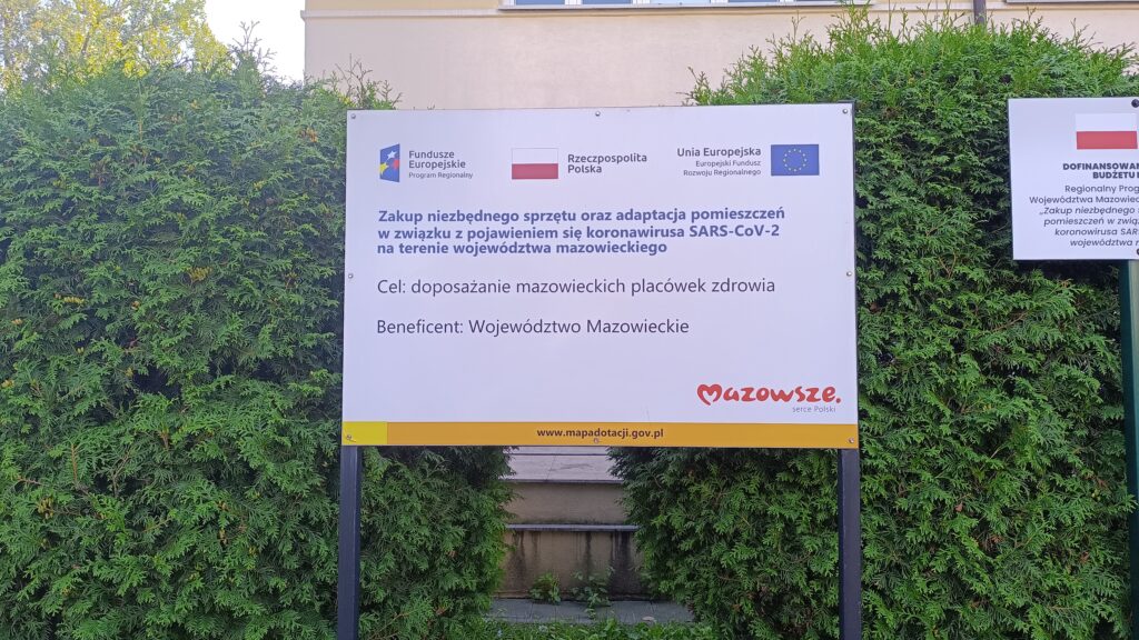 Projekt realizowany w ramach Regionalnego Programu Operacyjnego Województwa Mazowieckiego na lata 2014-2020, pn. „Zakup niezbędnego sprzętu oraz adaptacja pomieszczeń w związku z pojawieniem się koronawirusa SARS-CoV-2 na terenie województwa mazowieckiego. Wartość projektu wynosi: 578 172 121,00 zł, w tym 493 442 397,00 zł to środki unijne, 34 144 342,00 zł – środki budżetu państwa, a 50 585 382,00 zł – wkład własny województwa mazowieckiego.